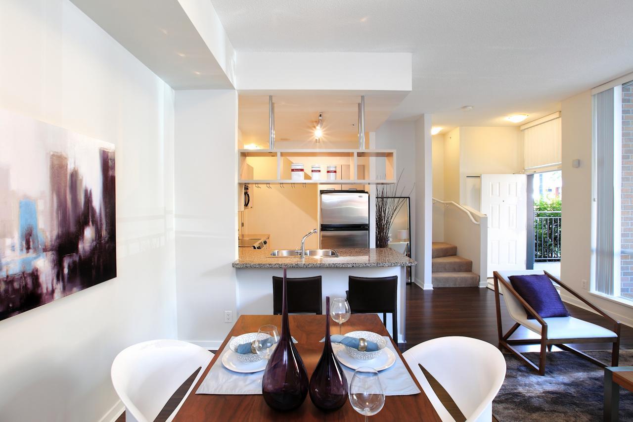 Welcome to this lovely luxury townhome in the heart of downtown Vancouver. This unique 2 level private residence comes complete with its own street entrance, 10 foot high ceilings on the main level, an open plan kitchen with granite countertops & stainless appliances, 2 bedrooms & 2 bathrooms upstairs and a patio for your grill.