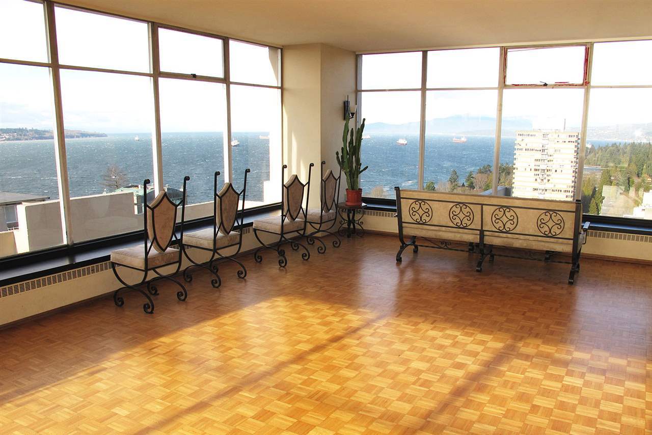 STUNNING OCEAN & MOUNTAIN VIEWS from this BEAUTIFULLY and TOTALLY renovated rarely available sunny West-facing suite at the top of the El Cid with captivating ocean views and sea breezes off English Bay. Gorgeous magazine quality renovations include: open kitchen with island, recessed lighting, stainless steel appliances and spa bath. 360 degree rooftop deck, indoor heated pool and sauna. Situated West of Denman just steps to Stanley Park, English Bay and the coffee shops of Denman St. The building has completed extensive upgrades to the exterior to the tune of $6,000,000. This suite boasts brand new windows. The building has taken care of all its major maintenance including exterior, roof, common areas, pool and gardens. Rentals and small pets with permission.