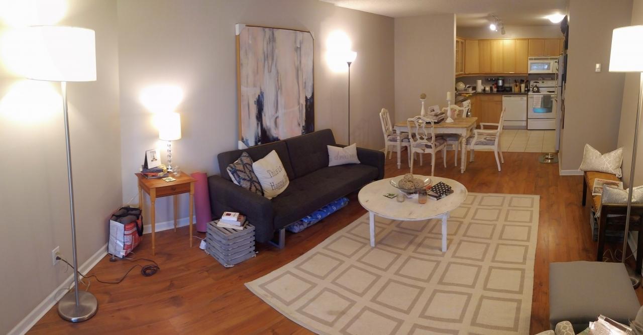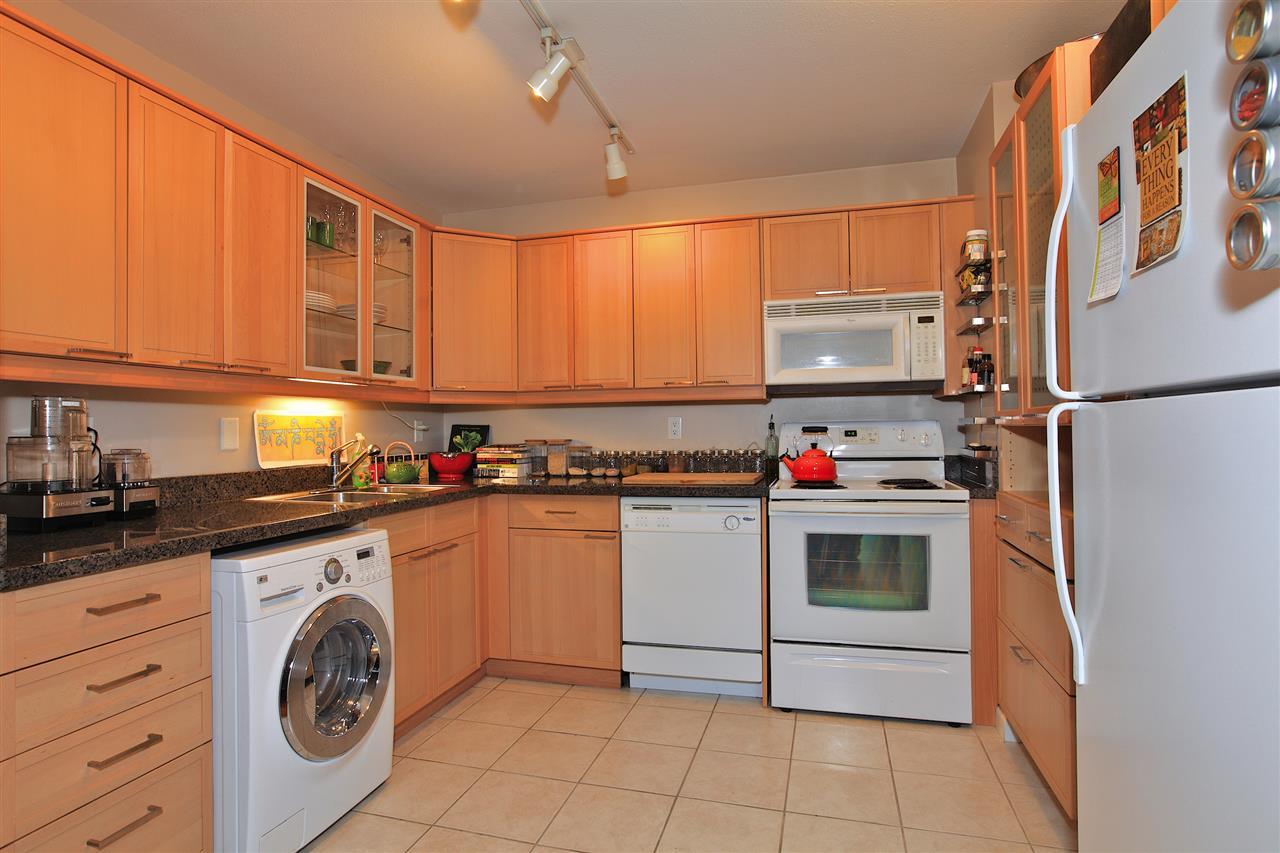 The unit features an open, contemporary kitchen, laminate flooring & a euro-style LG washer/dryer (
