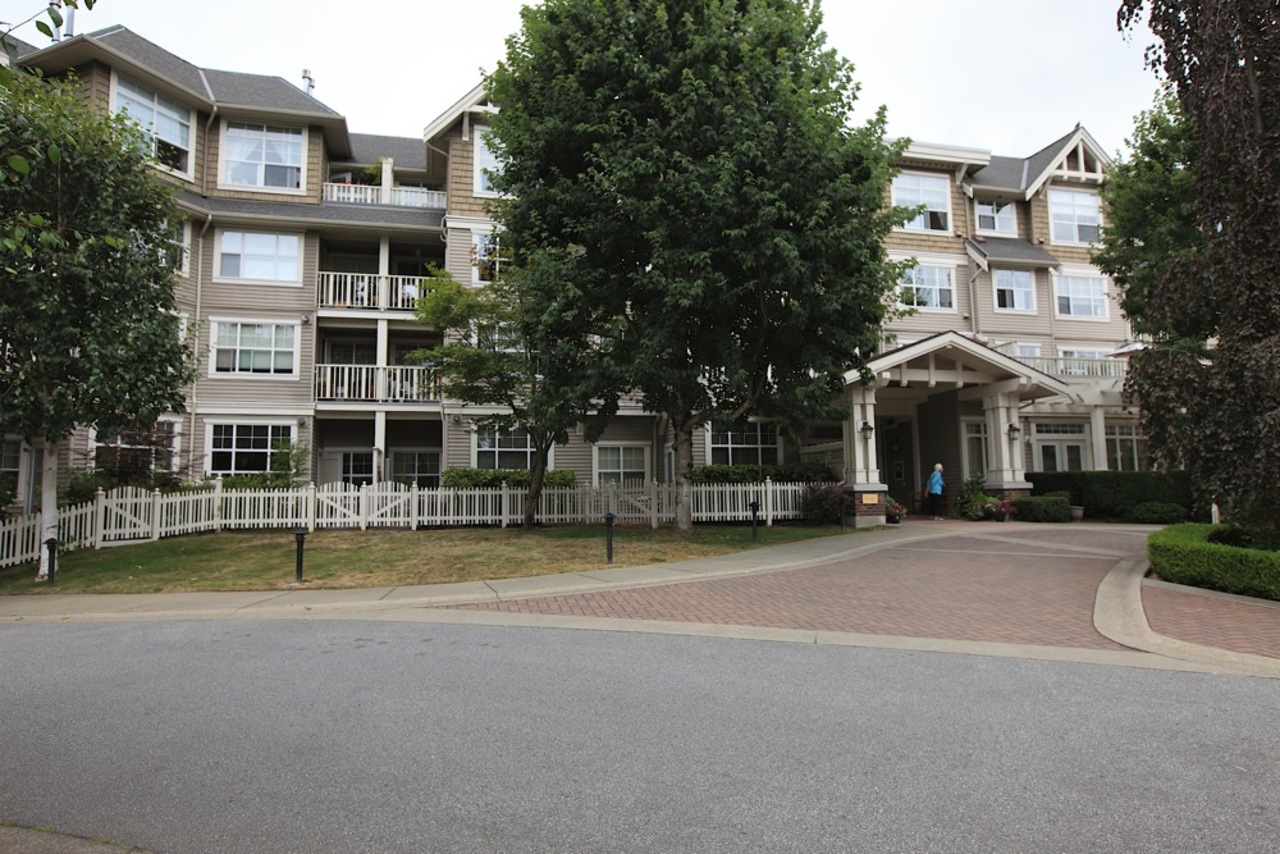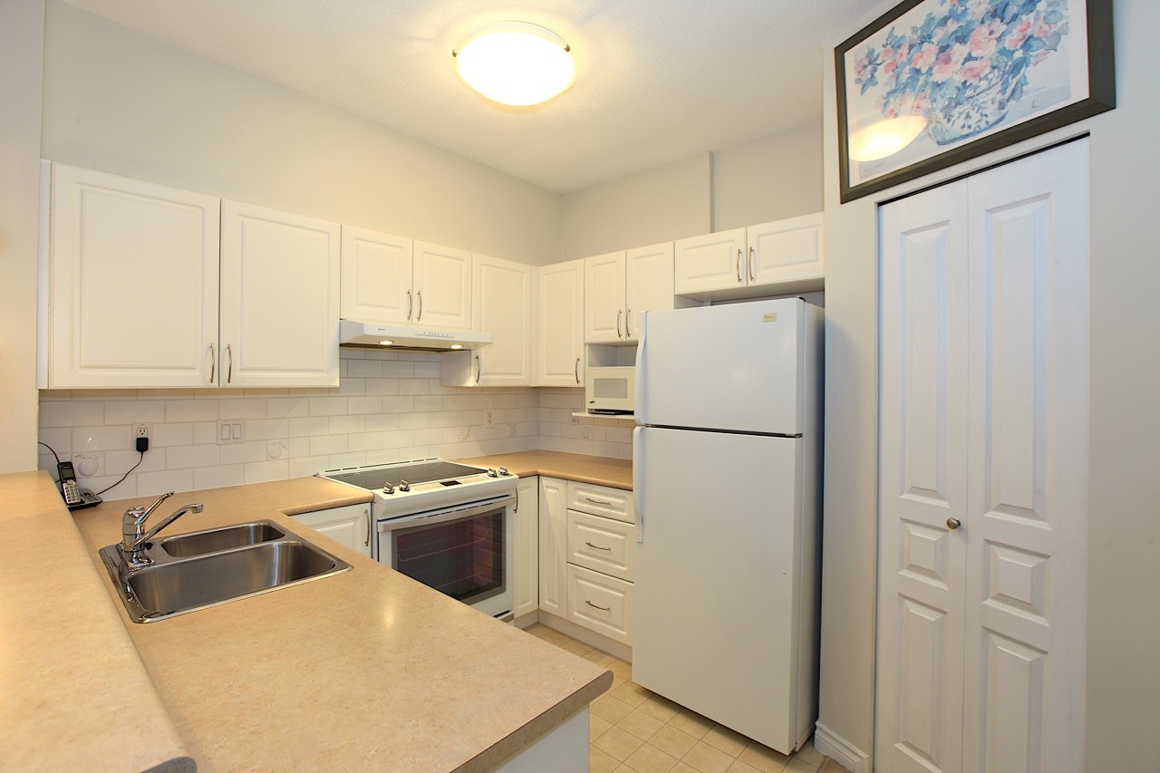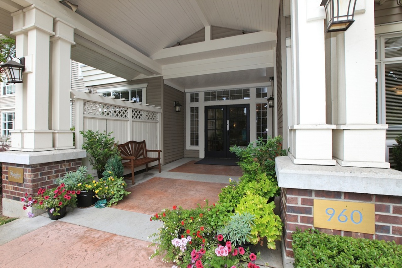Looking for the perfect home in which to retire or downsize? You found it here in this @700 square foot garden suite at beautiful Balmoral House in Lynn Valley. This 1 bedroom, 1 bathroom home features a large open plan kitchen with lots of counter space, extra high ceiling in your living room for true feeling of space, a good size master bedroom with a walk-in closet and an ensuite bathroom featuring a double sink and an easy access shower. You have both interior hallway access as well as the ability to come and go via the door to your patio, complete with white picket fence! Pets allowed too. All this means it is time to start living the good life in this purpose-built adult (55+) community by Ledingham McAllister. Come see for yourself.