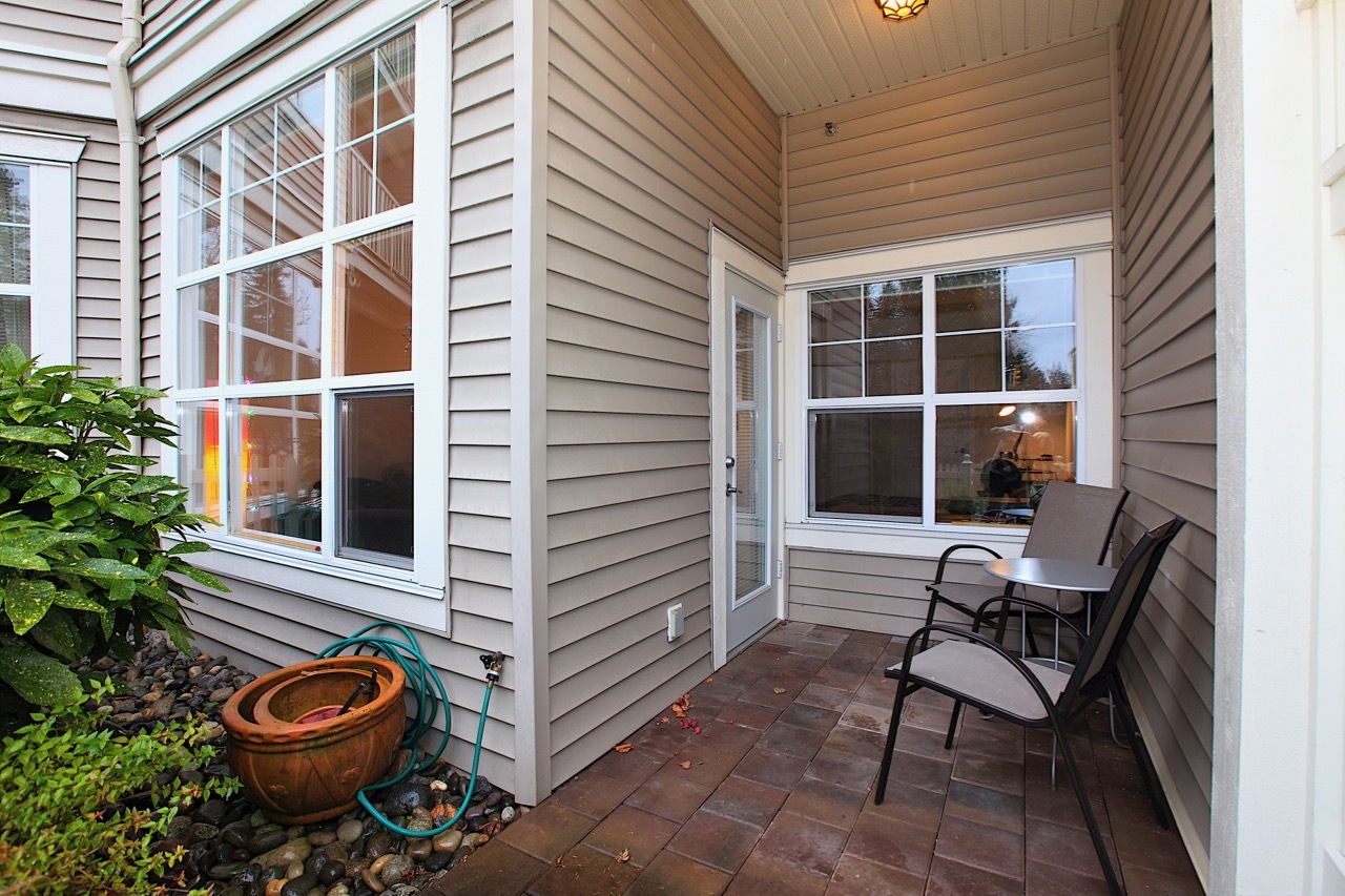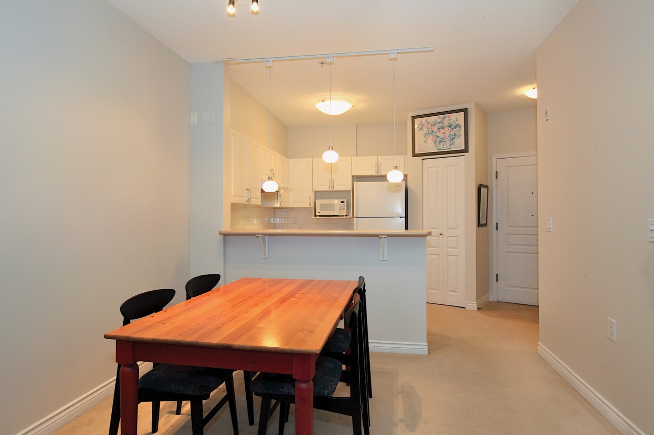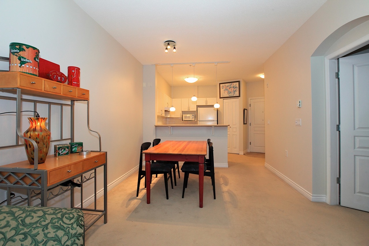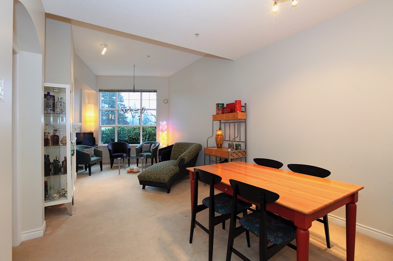 Looking for the perfect home in which to retire or downsize? You found it here in this @700 square foot garden suite at beautiful Balmoral House in Lynn Valley. This 1 bedroom, 1 bathroom home features a large open plan kitchen with lots of counter space, extra high ceiling in your living room for true feeling of space, a good size master bedroom with a walk-in closet and an ensuite bathroom featuring a double sink and an easy access shower. You have both interior hallway access as well as the ability to come and go via the door to your patio, complete with white picket fence! Pets allowed too. All this means it is time to start living the good life in this purpose-built adult (55+) community by Ledingham McAllister. Come see for yourself.
