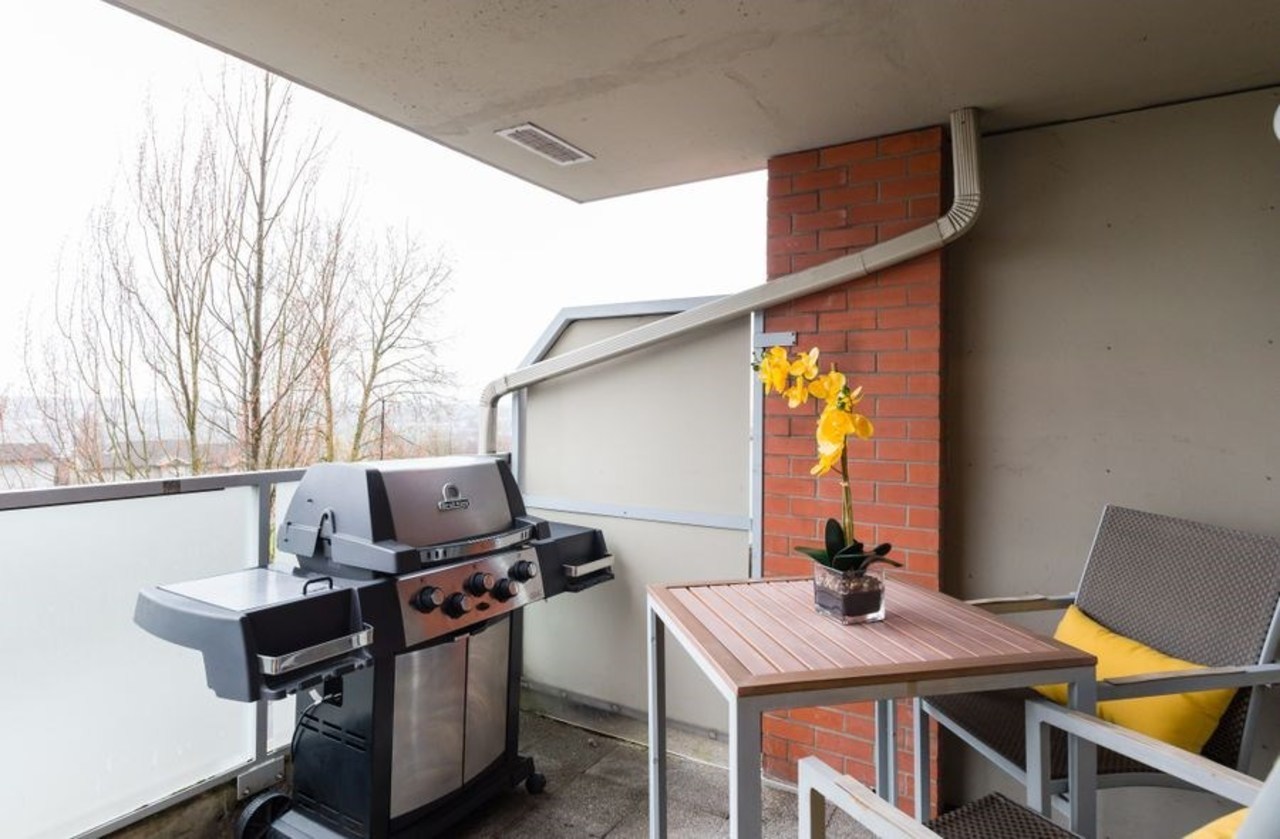 Location, location! Corner unit, 2 bed/2 full baths & den in the highly sought out CONCRETE BOUTIQUE MIDRISE-Mondeo! This SPACIOUS corner suite boasts a ton of natural light & very functional layout. The home features rich wood cabinetry, engineered hardwood floors, granite countertops, gas stove range & a LARGE KITCHEN w/plenty of cupboard space. Enjoy morning coffees or evening BBQ on the 95 sq ft patio deck. Convenient central location, close to Brentwood & Metrotown Mall, 15 mins to Downtown, walking distance to local restaurants, delis, cafes, parks & transit. 1 parking & 1 storage locker included. Pets & rentals are welcome! SEE VIRTUAL TOUR!
