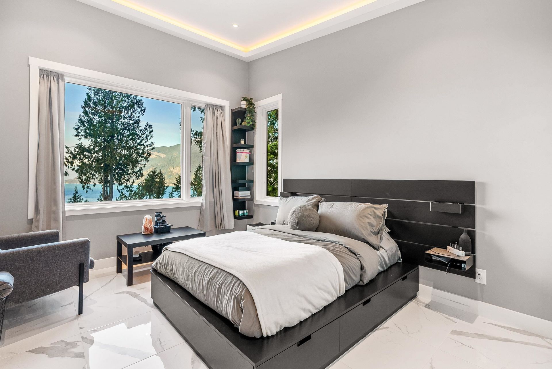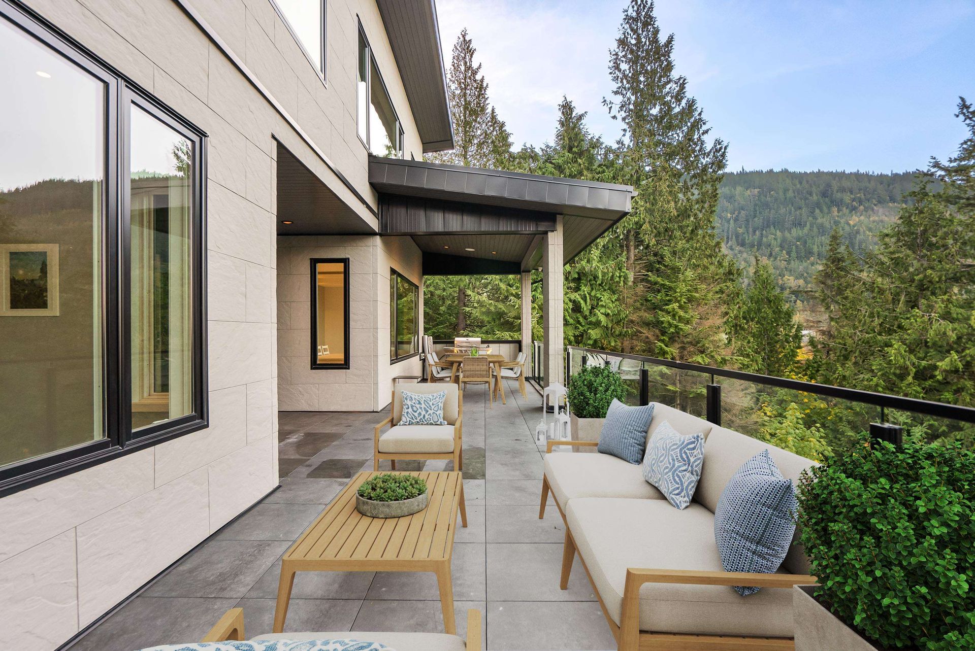 OCEAN VIEWS & GORGEOUS SUNSETS create the perfect setting for this stunning custom home. 4460sf of finished living+ 1,033 sf of outdoor patios & covers decks you can enjoy year round. Quiet natural setting is almost an acre (.88 acre/38,211 sf) & fully landscaped. Finishes include; Nichiha siding, standing seam metal roof, Pela metal clad windows, 3-panel moving glass wall system, 8’ doors on main floor, incredible modern kitchen for those that love to cook & entertain, quartz counters, Grohe plumbing fixtures, Kohler toilets and sinks, LED lighting, heat pump/air conditioning. Zoning allows legal suite+detached dwelling for the future if desired. NEW VILLAGE with market, restaurants & daycare. FOREIGN BUYERS CAN BUY IN BRITANNIA BEACH & Empty Housing Tax does not apply.