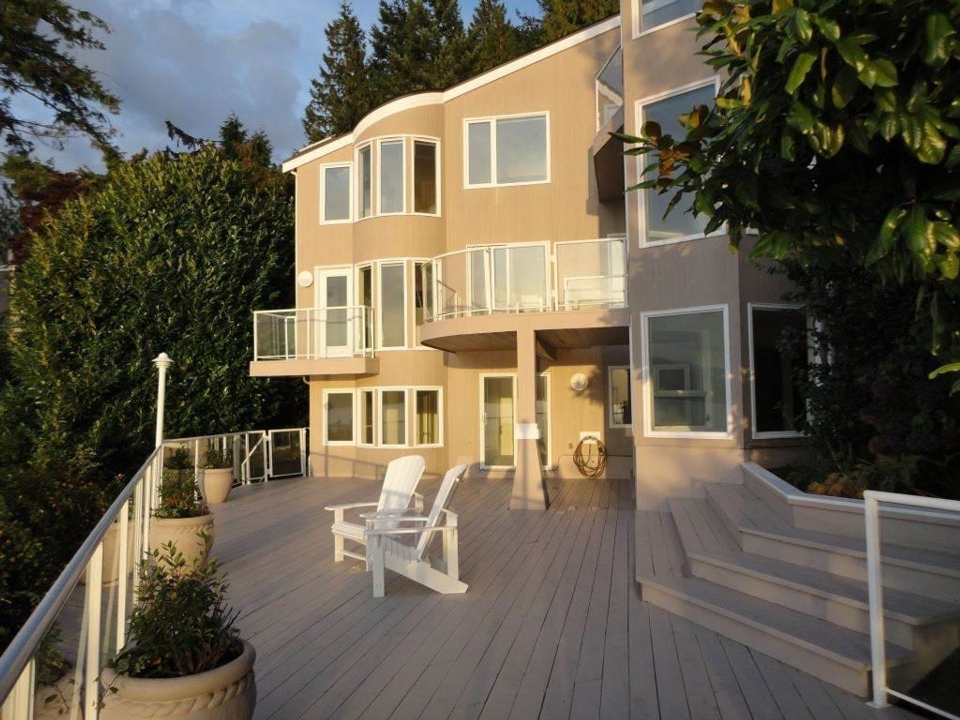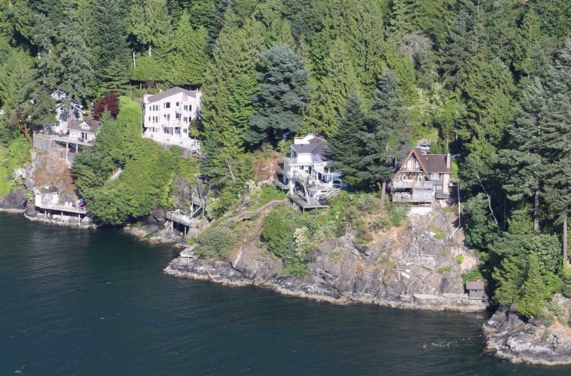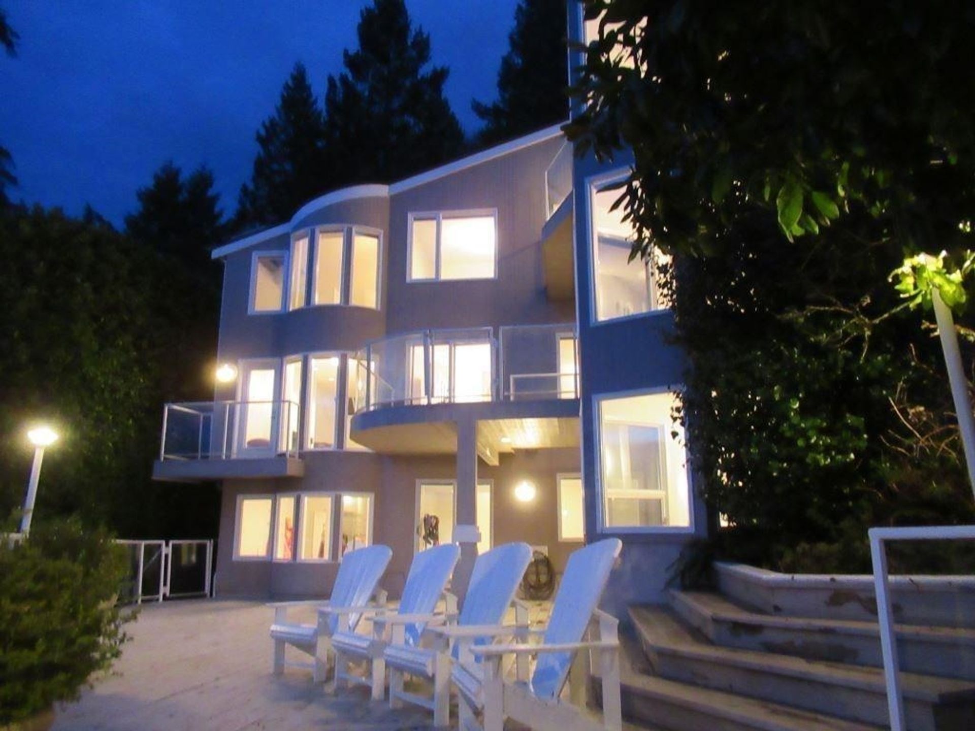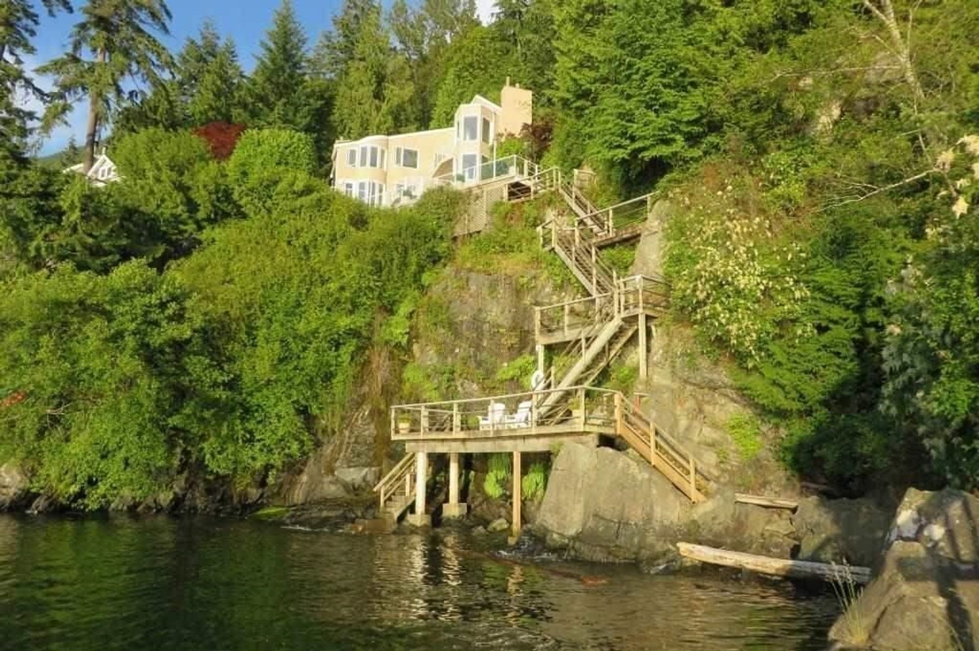 Majestically situated on almost 250 feet of shoreline, with panoramic unobstructed mountain and ocean vistas, the asking price reflects WATERFRONT land value. The older quality built family home requires repairs & renovation. Development potential of lower floor into suite for rental income generation. Recent council approval of bylaw amendments to allow for a dock access to the foreshore. Architecturally designed for gracious living and executive entertaining, this low maintenance estate property in a private setting offers incredible sunset views. Extensive outdoor living space, with easy ocean access, provides integration with nature such as whales, seals, dolphins, and soaring eagles. Imagine the seaside lifestyle of an ocean swim or kayak with freshly trapped prawns for dinner.